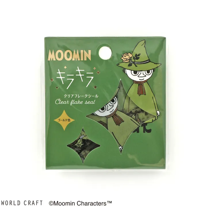 【ムーミンキラキラクリアフレークシール スナフキン 】 ◎PET素材に箔押しが魅力の「キラキラクリアフレークシール」に  ムーミンのなかまたちが加わりました!   『ムーミンキラキラクリアフレークシール第1弾(8柄)』 ★Point  10柄あるデザインの中で1柄は『大きめサイズ』が  3枚入っているのがポイント!!★  (大きめサイズのシールはパッケージ右上の柄です。  スマホケースの中に挟んだり、ノートの表紙にもぴったり合います。) ◎ファイルケースやクリアボトルなど  どんなものにデコレーションしてもぴったり馴染むデザインです♪ ◎8種類のキャラクターにスポットを当てた商品で、パッケージを見れば、  どのキャラクターが入っているかが一目で分かるデザインとなっています。   ◎ムーミンの世界観はそのままに、ピンポイントで使った箔がとっても可愛い  仕上がりになっています。 ◎スマホケースの中に挟んだり、ノートの表紙にもぴったり合います。  流行の手帳コラージュも映えるデザインが盛りだくさんです♪  ◎PET素材ならではの【透明度×やわらかさ×粘着】が  紙素材へのデコレーションだけでなく  身の回りの小物デコレーションにも馴染みます? 【第1弾 商品ラインナップ】 ・MOKFS?101 ムーミン ・MOKFS?102 リトルミイ ・MOKFS?103 スナフキン ・MOKFS?104 スノークのおじょうさん ・MOKFS?105 ミムラねえさん ・MOKFS?106 トゥーティッキ ・MOKFS?107 ニョロニョロ ・MOKFS?108 スティンキー 以上、ゴールド箔 【第2弾 商品ラインナップ】 ・MOKFS?109 ムーミンとスノークのおじょうさん ・MOKFS?110 リトルミイときょうだい ・MOKFS?111 ムーミンとスナフキン ・MOKFS?112 ムーミンパパとムーミンママ ・MOKFS?113 ともだち ・MOKFS?114 ニョロニョロ2 ・MOKFS?115 スティンキーとスニフ ・MOKFS?116 クロットユールとスクルッタ 以上、レインボーオーロラ箔 --------------------------------------------------------------------------------------- ◇◇ 横からひょこり日常を覗く 『ムーミンひょっこり stationeries』 ◇◇ ムーミンの世界に広がる木や花々からひょっこり飛び出すムーミンとなかまたち♪ そんなムーミンたちが私たちの日常を彩るステーショナリーシリーズが登場!! ◇◇ ムーミン商品ラインナップ ◇◇ ☆新商品☆ ■フィルムインデックスシール第2弾(5柄) < ムーミン / リトルミイ / スナフキン / ニョロニョロ / スティンキー > ☆新商品☆ ■フェイスシリーズ フレークシール(4柄) < ANGRY / HAPPY / ENNUI / THINKING > ☆新商品☆ ■フェイスシリーズ シートシール(4柄) < ANGRY / HAPPY / ENNUI / THINKING > ■マスキングテープ(8柄) < ボーダーピンク / ボーダーグリーン / ボーダーブルー / まるパープル /   森 グレー / ケーキ グリーン / フラワーブルー / フラワーオレンジ > ■フィルムマスキングテープ(8柄) < Woods / Garden / Grass / Going  /   Flower ライトグリーン / Flower ブルー  / Flower クリア / Flower パープル > ■キラキラフレークシール第1弾(8柄) <ムーミン / リトルミイ / スナフキン / Sのおじょうさん /   ミムラねえさん / トゥーティッキ / ニョロニョロ / スティンキー> ■キラキラフレークシール第2弾(8柄) < ムーミンとSのおじょうさん / リトルミイときょうだい / ムーミンとスナフキン /   ムーミンPとムーミンママ / ともだち / ニョロニョロ2 / スティンキーとスニフ /   Kユールとスクルッタ> ■養生テープ(4柄) < 森 / 草原 / 原野 / 雲> ■フレークシール(8柄) < 森とムーミンA / 森とムーミンB / ムーミンパーティーA / ムーミンパーティーB /   なかまたちA / なかまたちB / ミイがいっぱい / シルエット >        ■フィルムインデックスシール第1弾(2柄) < しかく / まる > ■ペーパーインデックスシール(2柄) < おおきい / ちいさい > ■リングノート(2柄) < 森 / ボーダ > ■メモパッドA7(2柄) < 木グリーン / いたずらピンク > ■箱シリーズ  ・A4サイズ(ぶどう畑 / はな )  ・カードサイズ(はなつみ / さんぽ / さがしもの / 釣り )  ・プチサイズ (ファミリー / リトルミイとミムラねえさん /            スナフキンとニョロニョロ / ムーミンとSのおじょうさん )  ・ポストカードサイズ(森 / 読書 / さかだち / みずうみ ) ■什器セット などを出品しておりますので、そちらのページもご覧ください♪