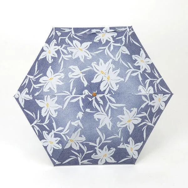 晴雨兼用2段ミニ折りたたみ日傘【百合(勿忘草色/わすれなぐさいろ)】