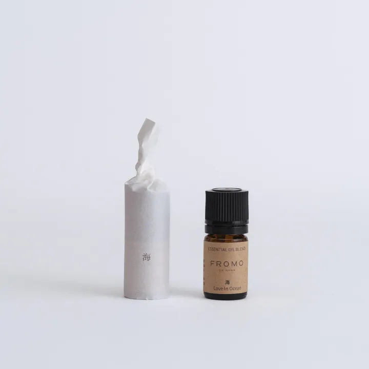 【 エッセンシャル オイル 海 (ラブ イン オーシャン)】 さわやかに浄化してくれる香り グレープフルーツ、ユーカリ、ベルガモットなどをブレンド。澄んだ海のように、モヤモヤした気分を一新、さわやかな気持ちに。 FROMOのエッセンシャルオイルは、花や葉、果実、木など、植物から抽出した天然の100%ピュアオイルです。植物のピュアな香りは、心にはたらきかけ、日頃のストレスや緊張をほぐし、からだのバランスを整えてくれる作用があります。 *船便での発送のため、沖縄県外はお届けに約1週間かかります。 ● 使い方 ・ディフューザー、アロマポット、アロマストーンなどに、適量(数滴)垂らして、香りを拡散させてお楽しみください。 ・市販のキャリアオイル(精油を希釈するための植物油)に1%未満まぜて、マッサージオイルとしても使用いただけます。(肌に合わないときは、使用をご遠慮ください) ・使用後は、必ずキャップをしっかりと閉めてください。 ・必ずビンを立てた状態で、保管してください。 ・酸化を防ぐため、温度変化が少なく、直射日光の当たらない場所で保管してください。 ・開封後は、半年以内を目安にお使いください。(成分変化が起こりやすいものもありますので、使用時は必ず香りを確認してください) ● おすすめの使用シーン ・お部屋の芳香に、香りを拡散させてお楽しみください ・キャリアオイルと混ぜて、ボディマッサージに ● こんな方におすすめ 気持ちをリフレッシュしたい方