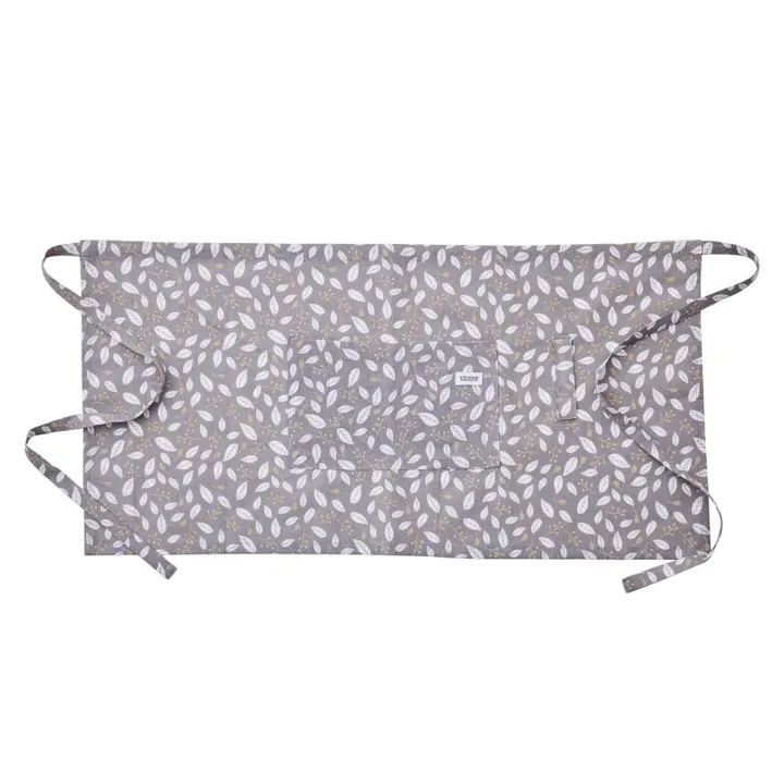 繊細なリーフ柄が美しいエプロン。 ライトグリーンは爽やかで軽やかな印象を、グレーは落ち着いたシックな雰囲気を演出。 自然のやさしさを感じさせるデザインで、日常をより心地よく彩ります。 ●POINT 【気軽に着用しやすい腰巻タイプ】 短めの丈で動きやすい腰巻タイプのエプロンです。 【大きめなフロントポケット】 大きめなフロントポケット付き。 センターで分かれているので、メモやレシピなどを仕分けて入れることができます。 【クロスかけ紐】 キッチンで作業する際に便利なクロスかけ紐。 キッチンクロスやタオルなどをかけておくと便利です。