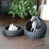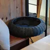 モダンテイストの編み込みベッド  モノトーンで配色をそろえたモダンなペットベット。 落ち着いた雰囲気で、置いてあるだけでお部屋のインテリアにもなる。