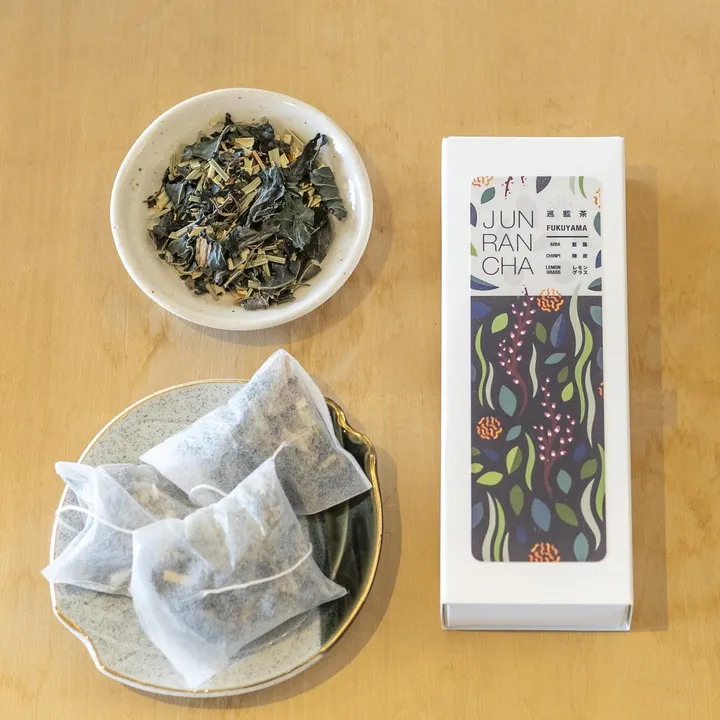 【便利なティーパックタイプです】 「纏う藍から、取り込む藍へ。」 福山の豊かな土壌が育んだ希少な「藍葉」を、日常に寄り添うセルフケアの一杯に。 【商品詳細・ストーリー】 古来より日本を守ってきた「藍」を、現代のティータイムに。 広島県福山市山野町。土づくりからこだわる「藍屋テロワール」が大切に育てた、藍染の原料としても知られる「藍の葉」を贅沢に使用しました。 藍は古くから薬草として親しまれ、その高い薬効から身体を守るものとして重宝されてきました。本品は、その藍の葉をベースに、爽やかなレモングラスとオレンジピールをブレンド。薬膳の知恵を活かし、身体の余分な熱を逃がし、気の巡りを整える「冷」の性質を持たせた、心身をリセットするためのハーブティーです。 一口飲めば、レモングラスの清涼感の奥に、藍特有の野性味ある力強い味わいがふわりと広がります。 【バイヤー様へのおすすめポイント】 1. 「藍を飲む」という新感覚の体験と話題性 藍染のイメージが強い「藍」を食用として提案。非常に珍しく、かつ「地域素材」としての背景がしっかりしているため、感度の高いお客様の目を引きます。 2. 安心のノンカフェイン&多機能な「整え茶」 ノンカフェインなので、お休み前や妊婦さん、お子様でも安心。消化を助ける配合のため、食前食後のデトックスティーとしてもご提案いただけます。 3. シーンを選ばないギフト需要に対応 スタイリッシュなパッケージ(予定)と「福山・山野のテロワール」という産地背景は、地域の手土産や、健康を気遣う方へのギフトに最適です。 【活用シーン・展開イメージ】 ギフトショップ・お土産店: 「広島・福山の新しい手土産」として、地域のこだわりを紹介するコーナーに。 ヨガ・フィットネス・温浴施設: 発汗後の水分補給や、代謝を促す「整えのインナーケア」として。 オーガニック・自然派食品店: 化学肥料に頼らない土づくりからこだわった、ストーリーのある商品として。 【お召し上がり方】 Hot: 沸騰したお湯で2〜3分。二煎目まで香り高く楽しめます。蜂蜜をひとさじ加えると、より深いコクが生まれます。 Iced(水出し): 水1Lに5gを入れ、冷蔵庫で4〜6時間。夏のデトックスウォーターとしても最適です。 lemon(アレンジ):出来上がったハーブティーにレモン果汁や汁を搾り、少し甘み(蜂蜜や砂糖)を加えると、より爽やかなしっかりとした味わいを楽します。 【商品仕様】 原材料: 藍葉(広島県産)、レモングラス、オレンジピール 生産地: 広島県福山市(藍屋テロワール) 特徴: ノンカフェイン、保存料・着色料不使用 内容量:2.5g×5