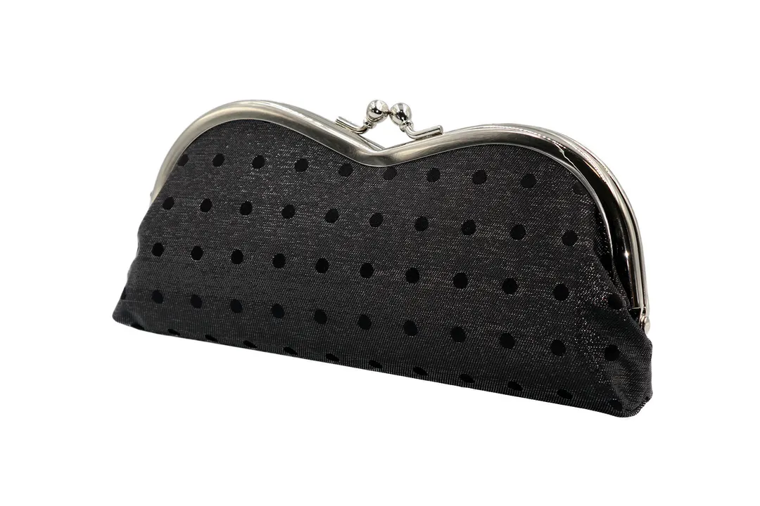 キラキラと光り輝く眼鏡ケース/西陣織シルク×艶やかナイロン・山型がま口眼鏡ケース・水玉・レディース・日本製 スパークリング・ブラック