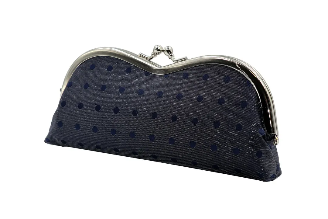 キラキラと光り輝く眼鏡ケース/西陣織シルク×艶やかナイロン・山型がま口眼鏡ケース・水玉・レディース・日本製 スパークリング・ネイビー