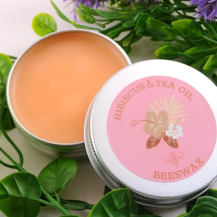 LeiBllomオリジナルビーワックスクリーム オーガニックの蜜蝋に、茶の実油とハイビスカス花油をバランスよく配合し 可愛いピンクのクリームが完成しました。 手荒れや、マスク荒れに薄く伸ばして塗ってください。 ほんのりハイビスカスの香りに癒されます
