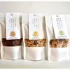 石川県産の特別栽培された米粉と能登の塩を使用した、 グルテンフリーグラノーラ。 有機オートミールと有機ココナッツオイルを使用し、 ザクザクの食感に仕上げました。 そのままでも、お好みのミルクをかけたり、アイスのトッピングや、ヨーグルトにいれたり、お好みでお召し上がり下さい。 【メープル】 定番の人気商品。素材の味を引き立てるメープルのやさしい甘さ。ザクザク食感。 【チョコ】 有機ダークチョコチップ入り。クランベリーの甘酸っぱさとチョコの甘さがおいしい一品。 こだわりの材料 〇石川県産の米粉 石川県白山市を拠点とする『稲ほ舎』さんが丹精込めて育てた、減農薬で育てたコシヒカリ【銀のとんぼ】を原料とする米粉を使用しています。霊峰白山から流れる手取川のゆたかな水と、白山おろしの山風が育てたお米本来のやさしい甘みと風味を大切にし、安心・安全なこだわりの素材で仕上げました。 〇能登の塩 能登の海から汲み上げた海水を、薪火でゆっくりと炊き上げてつくった、やさしい味わいの天然塩を使用しています。 自然の恵みと、手間を惜しまない人の手から生まれた、まろやかな塩です。