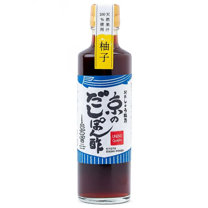 おだしの旨みと天然果汁が相まって、酸味と香りが豊かなバランスに仕上がった京のだしぽん酢。 天然果汁100%配合。 果汁の香りやぽん酢としての美味しさを追求して、おだしのうね乃ならではの配合に辿りつきました。 超果汁タイプに比べて、まろやかな酸味で馴染みのあるお味に仕上げました。