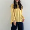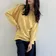 【日本製】ウォッシャブルウール_ボートネック スクエアシルエット裾スリットプルオーバー マスタード 1-2サイズ