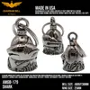 アメリカ製ガーディアンベル社製ガーディアンベルです。 MADE IN USA アメリカ製 交通安全 魔除け 御守り ガーディアンベル アメリカのライダーの間には、事故や、転倒の原因は「道路にひそむ悪魔」によるいたずらだという伝説があります。悪魔は走る者に悪戯やトラブルを運んできます。このベルは美しい音色で悪魔たちを追い払うと言われ愛されています。そんな悪魔のいたずらを防ぎ、御守りとなるのが、守護者のベルという意味を持つガーディアンベル。 日本でも鈴の音(ね)は神道では魔除けの音と言われています。ピューター製の鈴でいい音色でガーディアンベルはデザインも様々あります。 またガーディアンベルにまつわる伝説として、プレゼントとして送られたベルの効果は、自分で手に入れたものの2倍になると言われています。 それゆえに彼氏・彼女・友達・家族へのプレゼントとしての人気も非常に高まっています。 シルバーアクセサリーのようにおしゃれに装着できて素敵な音色を奏でるガーディアンベル。 バイカー以外にも自転車や旅・交通安全のお守りとしてお使いいただけます。 カバン・ランドセル・キーホルダー・ペットの首輪等に付けてお使いください!! ※タイラップ等でバイクのフレームにも簡単に取り付けできます。 アメリカンモデルだけではなく、旧車ファン、レプリカライダーまで、さらにバイクだけでなく、自転車や車にもピッタリな御守りとなっています。 アクセサリーとしても人気で、アイディア次第で車体だけでなく、キーホルダーや鞄など、どこにでも付けておしゃれに楽しめます。