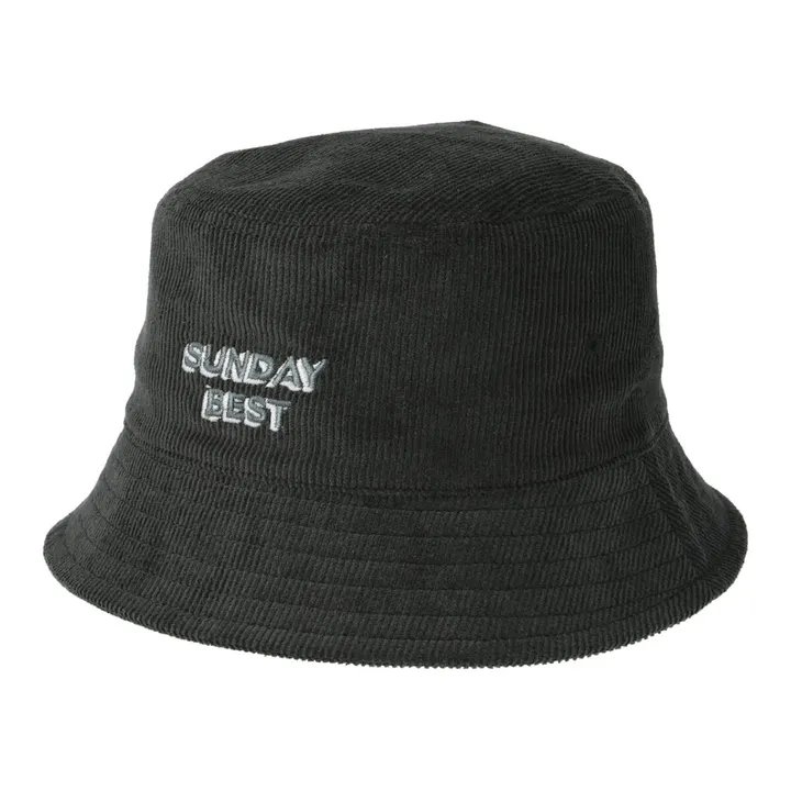 柔らかい質感のコーデュロイ生地。ベーシックなシルエットのバケットハット。フロントには3D 風の刺繍"SUNDAY BEST" を施しています。