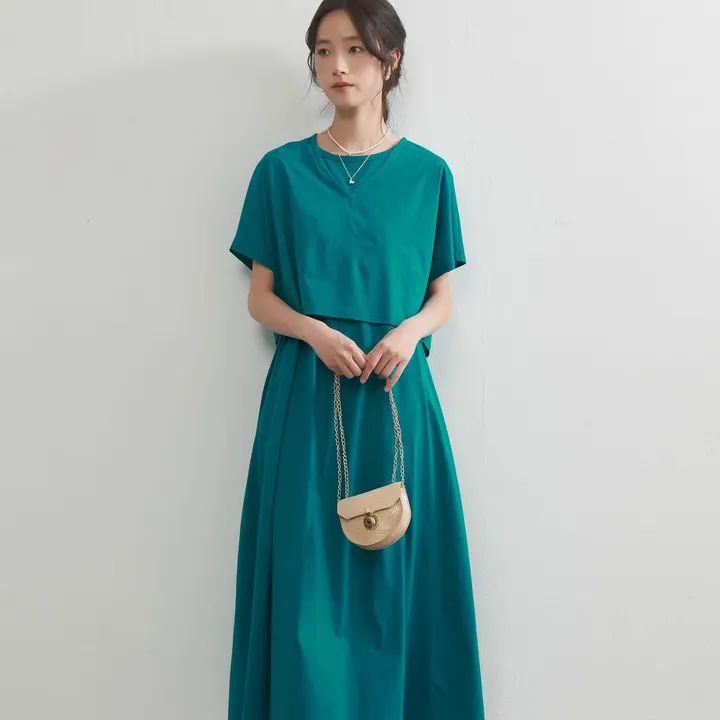 KNGT614・シルケットコットンボレロとワンピースのセットアップ GREEN/M