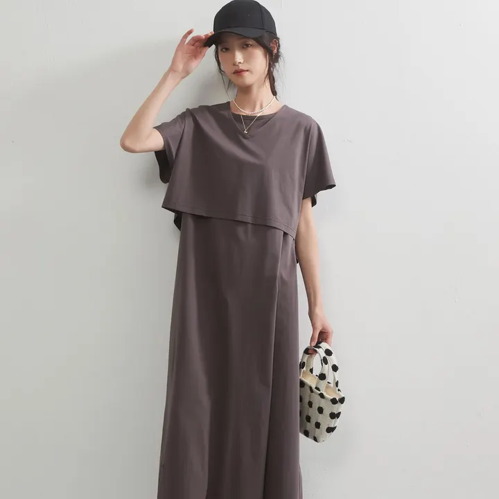 KNGT614・シルケットコットンボレロとワンピースのセットアップ CHARCOAL/M