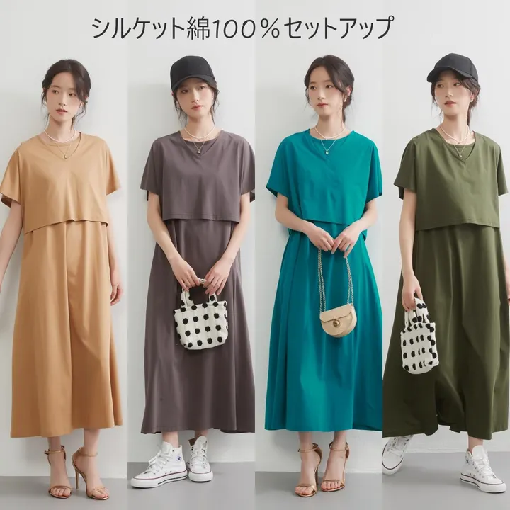 商品の特徴 Vネックのボレロとノースリーブワンピースのセットアップは、シンプルながらも洗練された印象。コンパクトなボレロはウエスト位置を高く見せ、スタイルアップ効果も◎。セットでも単品でも活躍する着回し力の高いアイテムです。 生地の特徴 上質なシルケット加工を施した綿100%カットソー素材を使用。なめらかな光沢感とさらりとした肌触りが特徴で、肌に優しく、快適な着心地をキープします。型崩れしにくく、デイリー使いにも最適です。 コーディネート提案 セットで着用すれば、品のあるナチュラルカジュアルスタイルに。ボレロはパンツスタイルに羽織っても◎、ワンピースは一枚でも存在感があり、アクセサリーやバッグ次第でオケージョンにも対応。オフィスから週末のお出かけまで、幅広く着こなせる便利なセットアップです。 単位(cm)モデル身長165cm サイズ M ボレロ: 身丈41/46 バスト114 裄丈38 ワンピース:身丈118 バスト98 肩幅38 サイズ L ボレロ: 身丈41/46 バスト118 裄丈39 ワンピース:身丈118 バスト100 肩幅39 素材:綿100% 中国製 透け感:なし 生地の厚さ:普通 光沢感:ややあり 裏地:なし 家庭洗濯:可能 【注意点】 ※撮影商品はサンプルの為、実際の仕様と異なる場合がございます。 ※画像の商品は光の照射や角度、お使いのモニター環境により、実物と色味が異なる場合がございます。スタジオ物撮りの画像が実物の色味に一番近くなっております。 ※予約商品の場合、お届け予定はあくまでも目安となります。 生産の都合上、お届け時期がずれる場合がございますので、あらかじめご了承ください。 ※表記サイズは商品の実寸です。 ※布製品の特性上、サイズ表の実寸法は多少の誤差が生じる場合がございますので、予めご了承ください。 #セットアップ ボレロ ワンピース#シルケット加工 ワンピース 綿100#ナチュラルカジュアル セットアップ#Vネックボレロ レディース#ワンピース 2点セット 春夏#着回し力 高い セットアップ#オケージョン対応 ワンピース#スタイルアップ ワンピース セット#上品カジュアル レディース服#オフィスコーデ ワンピース セット
