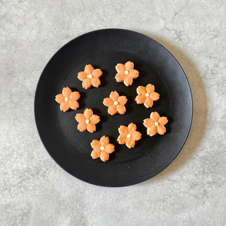 □米粉の桜クッキー(犬の無添加おやつ) 春のお花見やお出かけにぴったりな桜をイメージした米粉クッキーをご用意しました。 桜の花にはビーツを使用し、春らしい華やかなビジュアルのクッキーで サクッとおいしく食べていただけます。 犬のおやつとしてはもちろんのこと、プレゼントにも最適です。 ※小麦、卵、バター、砂糖、人工着色料は一切使用しておりません。 ※ペットの「食」の専門家であるペットフーディストが一つずつ丁寧に手作りしています。