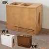 北海道 旭川市の自社工場で製作しています 箱ティッシュケースと一体化したゴミ箱は ティッシュを使った後にすぐに捨てられて便利。 風邪の時や花粉症の時期には特に手放せません。 場所を取らないスリムタイプです。 ゴミ箱は2つに分かれているので分別に便利。 ゴミ箱部分は、ビニール袋を掛けることのできる枠つき。 ■商品サイズ 約 横幅332×奥行160×高さ274mm (板の厚みなどで、多少の誤差が出る場合があります) ティシュケース入れは、箱の高さ60mmまでの スリムボックスティッシュが入れられます。 ※ボックスティッシュはメーカーによってはこのサイズが違いますのでご注意ください。 ■材質 合板使用。 木目、色合いなどが1つ1つ違います。