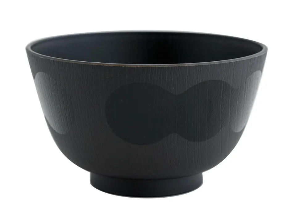 器の内外は欅(けやき)木目がリアルに再現されたナチュラルなシリーズ。 丸が繋がった豆を連想させる柄がほっこりします。 そのデザインからヒントを得た塗装色は、きなこ、あずき、黒豆と命名。 京型という口が開いた形なので、重ねて収納しやすく場所を取らないのも魅力です。 レンジ使用OKですので、日常に使い勝手のいい丼であり他の器との相性も◎。 シリーズ名は「穏やか、円満」を意味する“円(まどか)”の、更に古い語源になった“的か(まとか)”に由来しています。 汁椀サイズもございます。