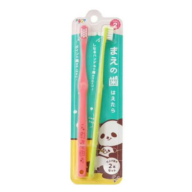 ピンポイントで磨けるしっかり毛と、優しく磨けるやわらか毛の2種類の毛を使用しなるハンドルで痛がらない磨き直しに最適な超薄型コンパクトヘッド ライムグリーンとコーラルレッドのハンドルカラーの2本セット
