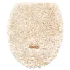 「フルーリスフレ」トイレシリーズ。ふわふわん糸の中にラメの糸が見え隠れし、光が当たると輝きます。すべて洗濯ネットに入れて、洗濯機で丸洗い可能です。マット、フタカバー、ペーパーホルダーカバーは上品なサテンのリボンと、縁に花のモチーフのレースをあしらっています。フタカバーは弊社独自開発の普通型 洗浄暖房型のどちらのタイプにも使えるドレニモフタカバー。吸着シートでフタに装着するタイプのカバーなので、フタの形状に影響されずお使いいただけます。吸着シートでピタッとくっつけて簡単に装着できます。スリッパは甲部分がリボンの形になっていて、お部屋用としても使いたくなる可愛さです。トイレ以外の場所に敷きやすい丸い形のラウンドマットもございます。