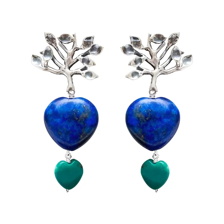 Aretes Árbol Cascada Azul|生命の木のピアス(シルバー・ラピスラズリ・天然石)
