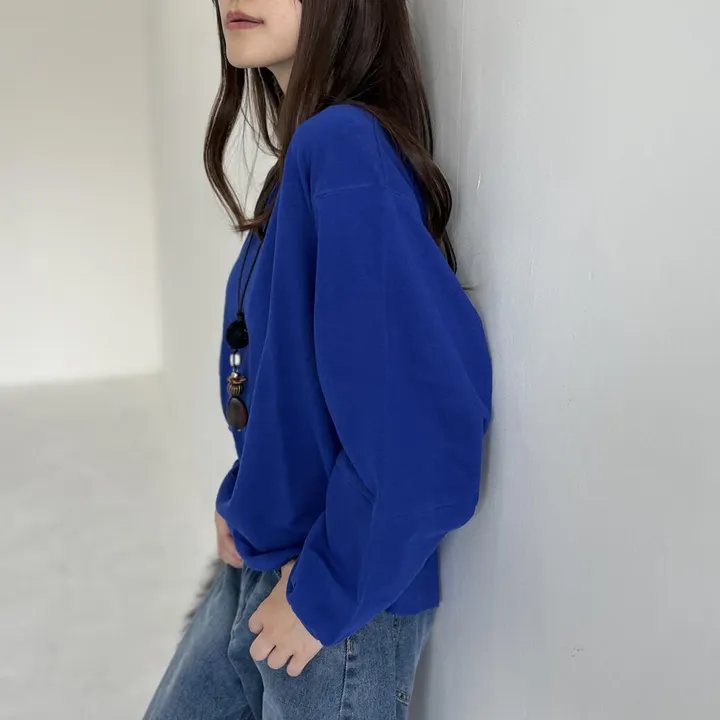 【日本製】French Terry ガーゼ ワイドロングスリーブ プルオーバー ロイヤルブルー