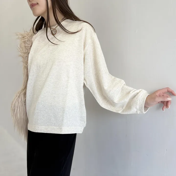 切替を入れて丸い袖のラインが特徴でゆったりとしたシルエットに太目の長袖