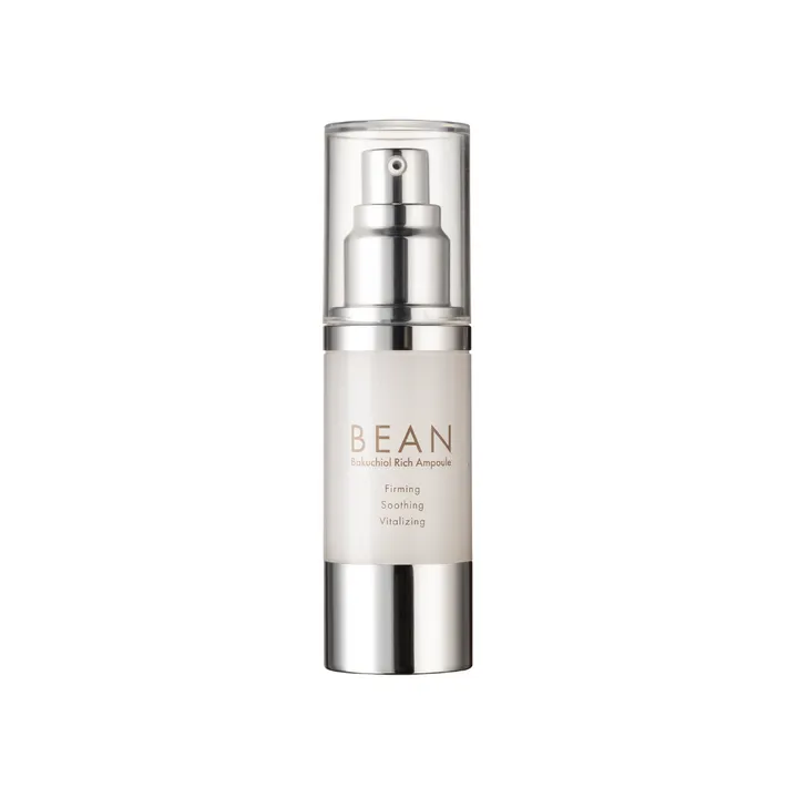 【クチコミレビューサイト:アットコスメ評価★7.0!/7.0(2025/1/10時点)】 #ハリツヤ #陶器肌 #水光肌 #エイジングケア※1 ≪商品説明≫ 植物のパワー*1×高濃度*2ペプチド うるおい陶器肌に導く贅沢リッチ美容液 3種の機能性ペプチド*3とヒト型セラミド*4を含む高保湿成分*5が肌のキメを整え、輝く透明感に。 主力のバクチオール*6を中心に肌トラブルにもすばやく働きかけ、揺らぎ知らずな肌へ。 はずむような弾力感と、しっとりとうるおいで満たされたリッチな素肌の体感を。 ーーーーーーーーーーーーー ●キー成分  Bakuchiol 0.5%※6 / Peptide※3 / Niacinamide※7 / CICA※6 / Ceramide※4 ーーーーーーーーーーーーー ●ポイント:肌のことを考えた8フリー処方 季節や肌質を問わずに使えて、夜はもちろん、朝のメイク前のケアとしても、快適にご使用いただけます。爽やかな清潔感漂う石けんをイメージした「サボン」の香り。 原料由来動物性成分不使用。 以下の成分を使用しておりません。 【 鉱物油・キレート剤・パラベン・エタノール・合成着色料・紫外線吸収剤・動物由来オイル 】 *全ての方に肌トラブルが起きないわけではありません。 ーーーーーーーーーーーーー ●使用手順 【化粧水】→【ビーンバクチオールリッチアンプル】→【乳液・クリーム】 ●使用方法  朝晩の洗顔後、化粧水で整えた清潔な肌に1~2プッシュを顔全体に肌のキメに沿ってやさしくなじませます。 ≪陶器肌を作るおすすめの使い方≫ ● 乾燥や気になる場所に お肌が満足するまでたっぷり使い。手のひらで顔の中心から外側に向かってゆっくり丁寧になじませます。 ● 年齢が出やすい箇所にも 意外とお手入れの忘れがちな首のケア。1プッシュを手に取り、首やデコルテまでやさしく塗り広げます。 *1植物エキス:アーチチョーク葉エキス,シロツメクサエキス,ツボクサエキス,マデカッソシド,アシアチコシド,バクチオール,グリチルリチン酸2K(全て整肌成分)*2当社製品内*3アセチルヘキサペプチド-1,パルミトイルトリペプチド-1,パルミトイルテトラペプチド-7(全て整肌成分)*4セラミドNP,AP,EOP(全て保湿成分)*5セラミドNP,セラミドAP,セラミドEOP,スフィンゴ糖脂質,フィトスフィンゴ シン,ヒアルロン酸Na*6整肌成分 *7整肌成分 透明感:うるおいを与えて透明感をもたらす