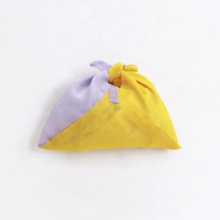 蚊帳生地を重ねて作ったみゆき袋です。 鮮やかなツートンカラーで、お弁当包みや小物入れとしてお使いいただけるサイズです。 吸水性、速乾性のよい性質をもつ蚊帳生地を鮮やかな色に染めたシリーズです。 ≪ 蚊帳生地の特徴 ≫ ・“風は通すが、蚊は通さない”江戸時代から続く日本伝統の布。 ・目の粗い生地で非常に軽く、速乾性・通気性・吸水性に優れています。 ・洗うほどにふんわりと優しい肌触りに変化していきます。  ※洗うと多少縮みます。 [サイズ/組成] 26cm×26cm 蚊帳生地:綿100% 飾り布:麻100% 日本製