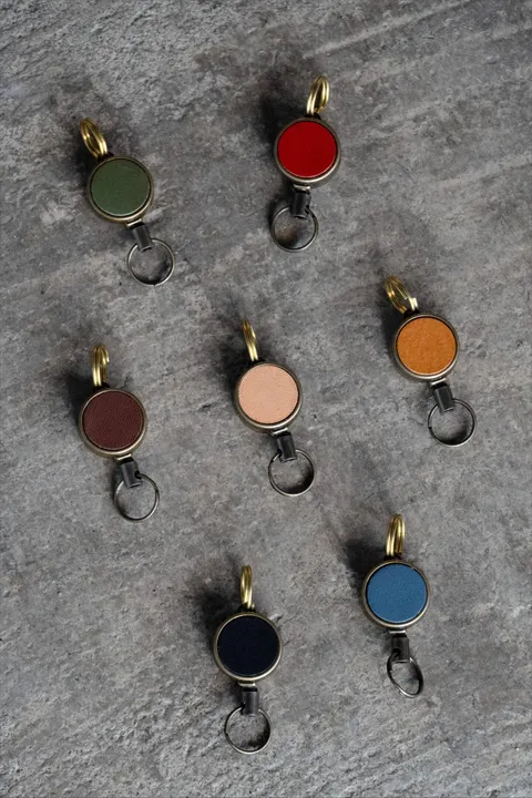 毎日の動作を、少しスマートに。 ID holderやPass holderなどと組み合わせて使える、伸縮式のリールパーツ。 バッグやベルトループに取り付けたまま、スムーズにICカードのタッチが可能です。 金具部分には真鍮素材を使用。 使い込むほどに深まる風合いが、革とともに経年変化を楽しめます。 本革の部分は、mincaの定番素材「植物タンニンなめし革」を使用。 シンプルな機能に、上質な素材感とクラフトマンシップを添えました。 Material:Oil leather、真鍮 Size:全長 約60mm(リング含む) / リール最長 約420mm ※本製品はIDホルダー・パスケースと別売りです 【注意事項】 ・商品のお色はPC環境によって多少色合い、見え方など違ってまいりますのでご了承ください。 ・部位によっては牛が元々持っていたしわや小さな傷がありますが、自然の風合いとしてお楽しみください。 ・職人が一つ一つ手作業で製作していますので革の表情は少々異なる場合があります。