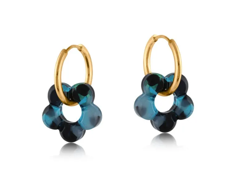 3718 Hispania メタル&レジンフローラルピアス BLUE/BLACK