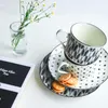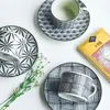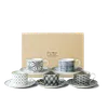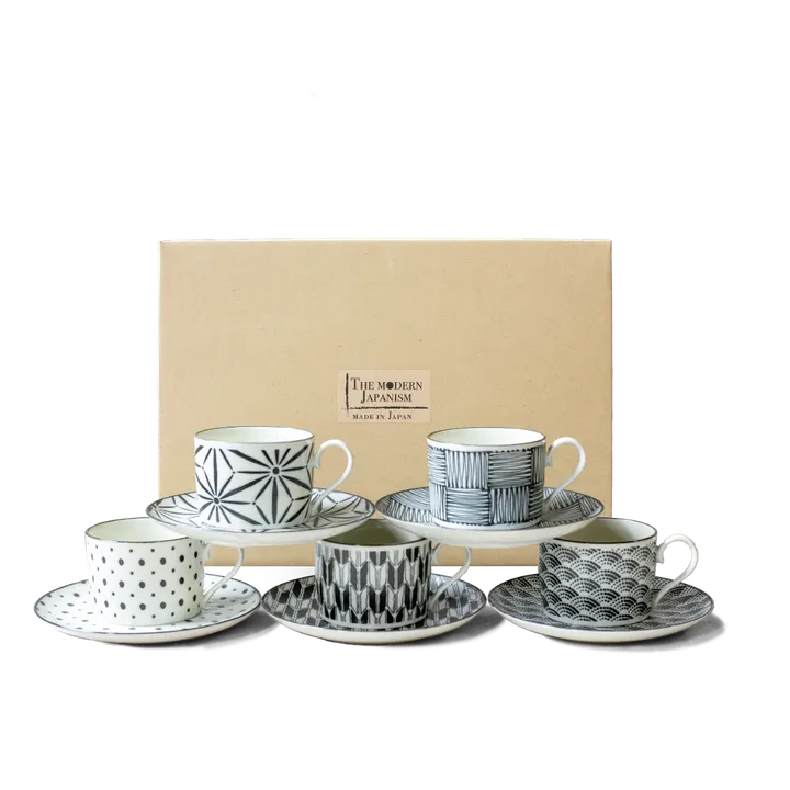 シャープでオシャレな形が和柄とマッチしています 贈り物にもぴったりな、贅沢なギフトセットです ソーサーは溝が無いので、お取り皿としてもお使いいただけます