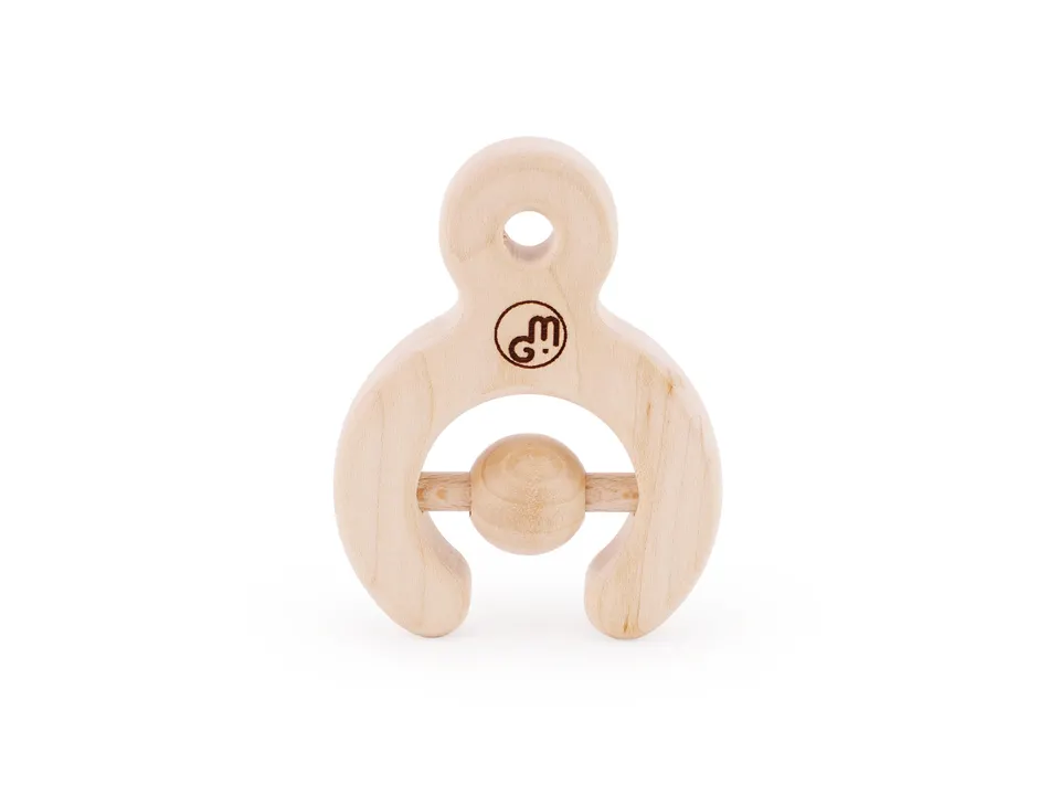 DARUMAは赤ちゃんの手のサイズに合った安心で優しいデザインの木製歯固めです。 かじってもなめても安心な固い木(メープル材)で出来ているので赤ちゃんの最初のおもちゃとして遊んでもらえます。 好きなところ握ったり、かじったり出来、また振ることでカタカタと心地良い音がします。 上の穴にひもを通してバギーやマザーバッグに掛ける事もできます。 (ひもは付属していません、子どもに合った安全なひもをご使用ください)