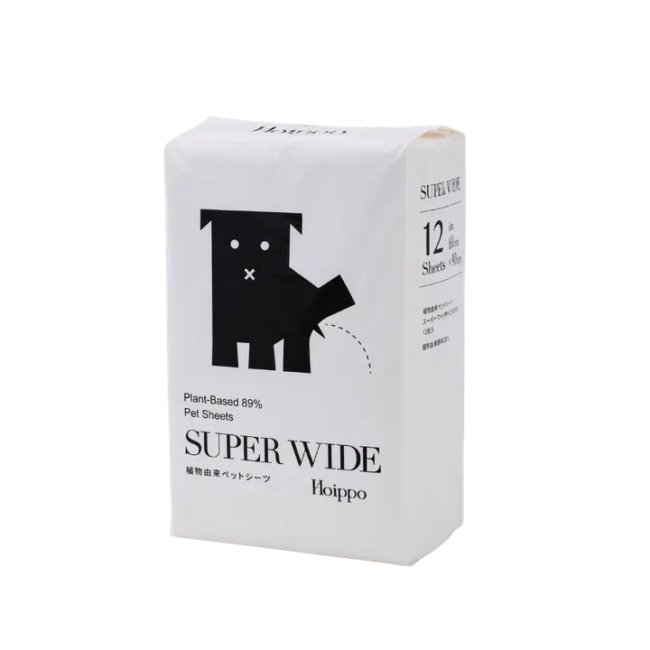 日本国内初*、植物由来原料89% 環境はもちろん愛犬愛猫にも優しいHoippoのペットシーツをリニューアルしました。 第二弾は一年間の試作を経て、速乾性・吸収率共に第一弾より約2倍アップ。 一年間販売してきた中でお客様にいただいたお声を参考に、インクをさらに減らしたエコパッケージにしました。 *自社調べ 商品の特徴 1.植物由来原料採用 ※生分解性100%ではありません 2.CO2の削減に繋がる 3.国産高吸収ポリマー採用 4.四隅にずれ防止シール付き 5.薄型高吸収タイプ 【植物由来原料採用】 通常ペットシーツに使用される石油由来のポリエチレンを使わず、植物由来の生分解性プラスチックであるPLA(ポリ乳酸)をシーツに使用。 植物由来のプラスチックは、通常プラスチックの中で最もCO2の排出が少ないといわれています。 その他、表面にはコットンを使用。愛犬愛猫の触れる部分には全て優しい素材を採用しています。 【高い機能性にこだわりました】 シーツのズレが心配な飼い主の方も安心いただける、四隅にずれ防止シール付き。 国産の高機能ポリマーを採用し配合のバランスを調整。 トイレしたそばから手足がビチャビチャにならない速乾性と吸水性はもちろん必須です。 薄型でかさばらず、持ち運びにも便利です。