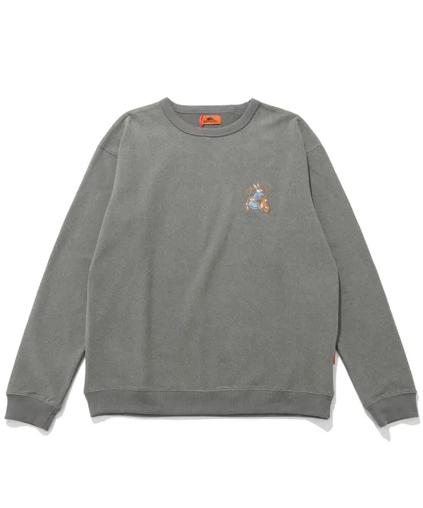 商品名の通り、もちもち&のびのびな肌触りが特徴の『もちのびシリーズ』! 心地よい厚みに両面起毛のふわっとした手触り。 もちっとした独特な伸縮性を持った長袖Tシャツです。 保温性も高く、秋冬シーズンにピッタリです。 昨年大好評だったバイク柄の刺繍をリニューアル! サイドカーをプラスしてクリフラビットとワンちゃんがおでかけしているグラフィックを刺繍で施しています。 トップス使いはもちろん、インナー使いにもオススメ。 メンズ・レディース問わず、ユニセックス使いとして楽しんでいただけるアイテムです。 こちらのアイテムは同グラフィック・同素材のドッグアイテム(品番:D2515605)も展開していますのでお揃いコーデをお楽しみいただけます!