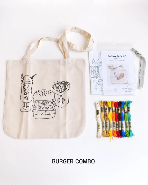 ILLUSTRATION TOTE BAG EMBROIDERY KIT BURGER COMBO