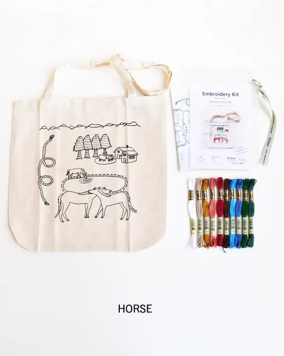 ILLUSTRATION TOTE BAG EMBROIDERY KIT HORSE