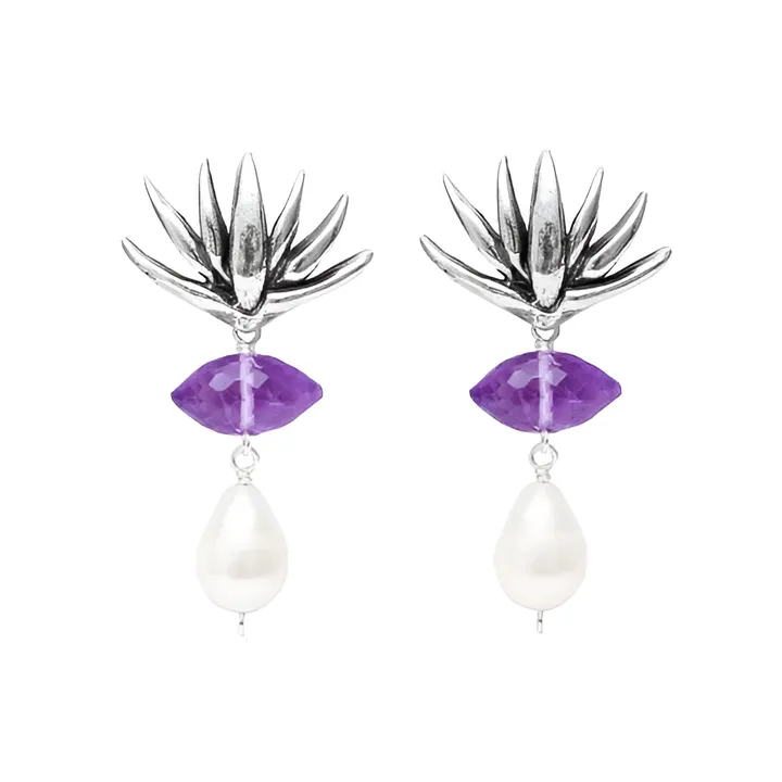 Aretes Agave Chico Amatista|アガベのピアス(シルバー・パール・アメジスト・天然石)