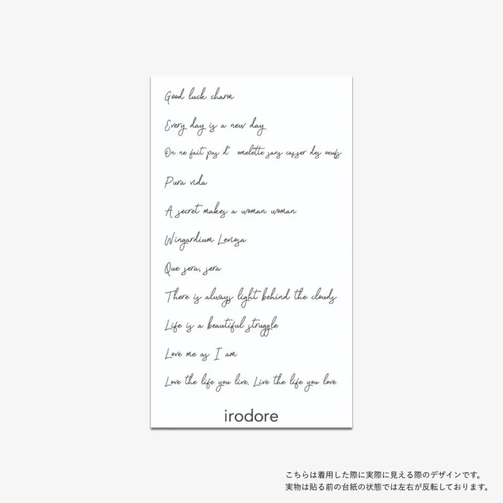 irodoreは「肌に一番近いおまじない」をコンセプトにしたタトゥーシールブランドです。日常的に使えるナチュラルで可愛い、綺麗なデザインを多数展開しています。