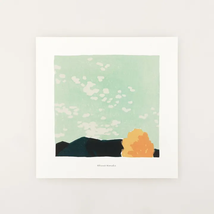 ※フレームは別売りです <デザイナープロフィール > 大川菜々子 / Nanako Okawa 香川県小豆島出身。武蔵野美術大学大学院版画コースを修了。伝統的な技法を現代的な感性で表現する木版画作家。日常の何気ない物事や風景を、柔らかく曖昧な色使いで温かみのある作品として描き出す。主に都内のギャラリーを拠点に個展やグループ展を開催し、定期的に作品を発表している。 <About the Paper> 発色の良さと紙の風合いという相反する性質を高いレベルで両立させた高級印刷用紙で、FSC認証※も取得しているヴァンヌーボV-FSの最厚紙を使用。 ※FSC認証とは「森林の管理や伐採が環境や地域社会に配慮して行なわれているかどうか」を評価・認証し、そうした森林に由来する製品(適正管理された森林木材による製品)であることを証明するものです。運営は、NGOであるFSC(Forest Stewardship Council®:森林管理協議会 本部ドイツ)が行っています。 <サイズバリエーション> ・200×200mm ・300×300mm