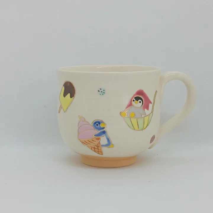 京焼・清水焼のマグカップ 京もの認定工芸士が手描きで仕上げました。 画像の作品は販売しておりますが、サンプルとして出品しております。 ご依頼者様とご相談の上、お使いになられる場所やお店に応じて、ご希望に添ったデザイン(オリジナル商品やOEM商品)や予算で製作いたします。 気軽にご連絡ください。 手作り、手描きのため、形や大きさ、絵柄など、写真のものと若干異なる場合があります。