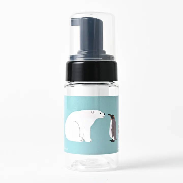 石けんワークス 携帯用 透明泡用ポンプ容器(シロクマとペンギン) ブルー(お話中)