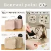 ユーザー様からのお声、「ペンシルを入れたいのに高さが足りない・・」 「コンパクトを入れると底がボコボコする」などの 少しもどかしく感じたサイズ感を見直し、 メイクアイテムがすっきり収まるよう改良。 また、内ポケット片側は4つのギャザーポケットへ。 上部のデッドスペースを有効活用できるように◎ 旅行のパッキングに更に便利になったLサイズは 中央に仕切りファスナーポケットを追加。 スキンケアアイテムからメイクアイテムまで 立てたまま収納しやすくなりました。 たくさんの仕切りやポケット、 洗濯機で丸洗い可能な点など 従来のいいところはもちろんそのまま。
