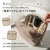 ユーザー様からのお声、「ペンシルを入れたいのに高さが足りない・・」 「コンパクトを入れると底がボコボコする」などの 少しもどかしく感じたサイズ感を見直し、 メイクアイテムがすっきり収まるよう改良。 また、内ポケット片側は4つのギャザーポケットへ。 上部のデッドスペースを有効活用できるように◎ 旅行のパッキングに更に便利になったLサイズは 中央に仕切りファスナーポケットを追加。 スキンケアアイテムからメイクアイテムまで 立てたまま収納しやすくなりました。 たくさんの仕切りやポケット、 洗濯機で丸洗い可能な点など 従来のいいところはもちろんそのまま。