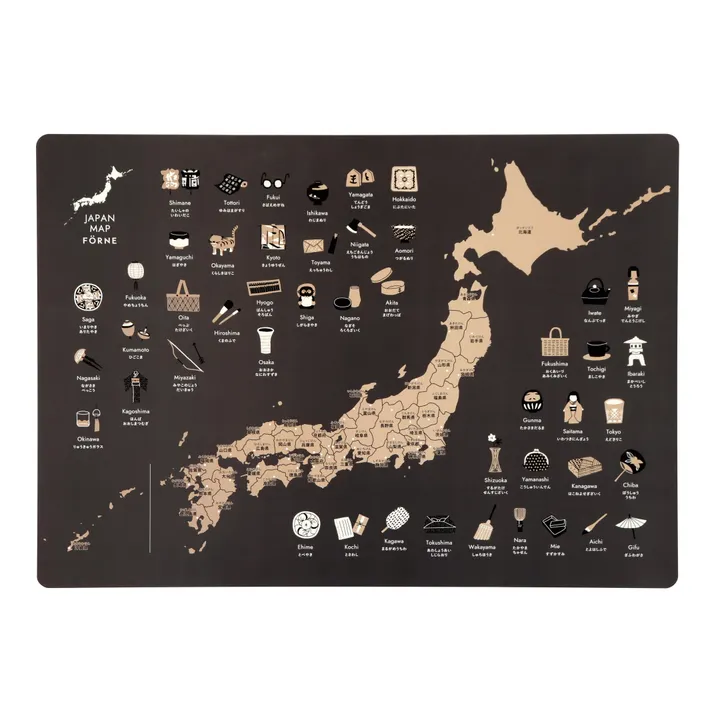 ・47都道府県の漢字表記とふりがな、県庁所在地の場所、都道府県名のローマ字表記、イラスト……盛りだくさんの要素がつまった、子どもだけでなく大人も楽しめる日本地図です。 ・地図の周りにちりばめたイラストは、その土地でつくられる暮らしの道具や工芸品を表現。 ・ポスターの素材は、防水性があり破れにくい紙でできているのでリビングや子ども部屋だけでなく、浴室内の壁にも貼ることができます。水で簡単にくっつき、何度でも貼り直しができます。