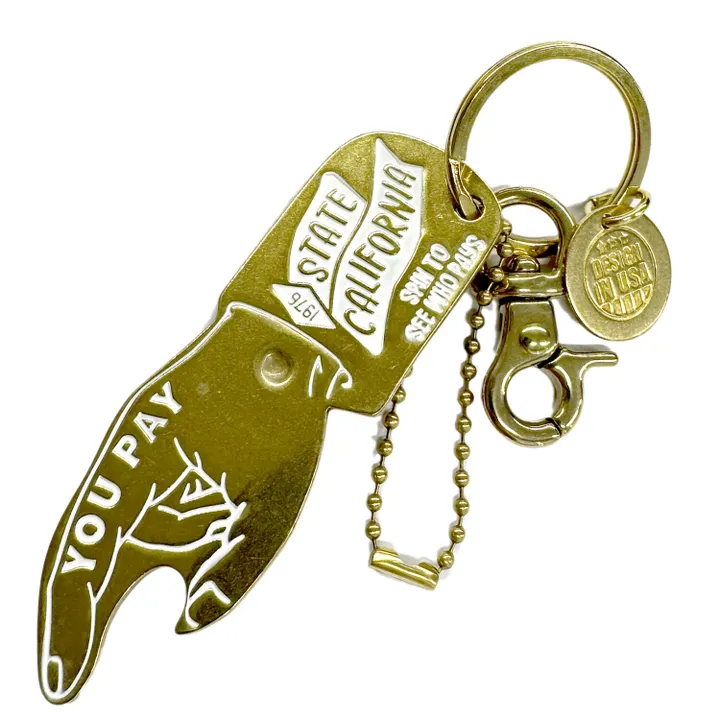 YOUPAY KEYCHAIN アメリカンバーなどで"酒を奢る人を決めるゲーム"で使われていたキーホルダーのセクシーピンナップガールデザイン。 キーホルダーとしての使用だけでなく、チェーンやヒモなどを通せばネックレストップとしてもお使い可能です。 【遊び方】 �@本体裏面の突起を支点にして回します �A回転が止まり「YOU PAY」に止まった人がお酒を奢ります。 ※最後のお会計時に「YOU PAY」に止まった人が全額支払うなどの使い方でも◎ 勝負に負けるか、タダ酒飲めるか。 使い方次第で色々楽しめます♪ 取り外ししやすいボールチェーン付きです。 元は昔、アメリカのドリンク会社のノベルティとして配られておりました。