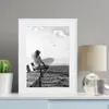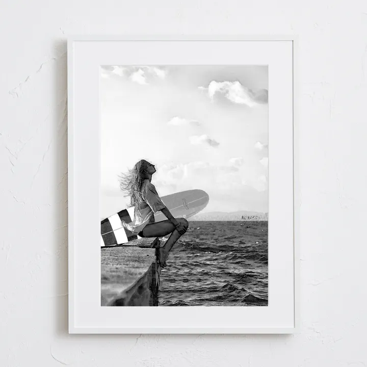 【現代アートポスター】サーフィンガール 海 波 モノトーン A4(S) フレームセット:白 29.4×38.4cm