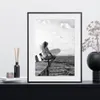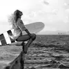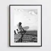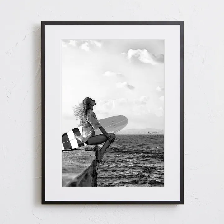 【現代アートポスター】サーフィンガール 海 波 モノトーン A4(S) フレームセット:黒 29.4×38.4cm