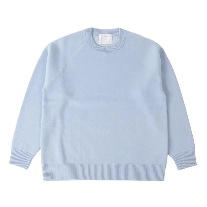 【Caresse】 ダブルジャガード ラグランスリーブカシミヤセーター SAX S