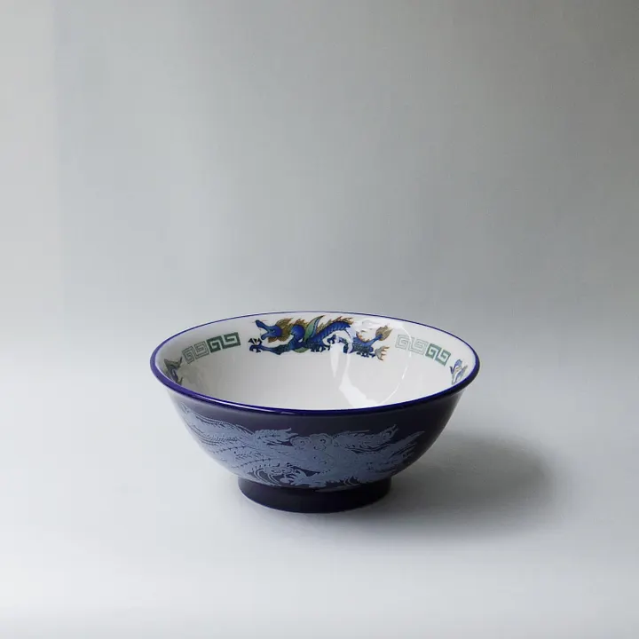 お子様や少し食べたい量にちょうど良いサイズのラーメン丼。内側の雷紋・龍・雲は職人による手張です。 ■三友製陶所/土岐市駄知 昭和20年、土岐市駄知に創業。どんぶり側面の白龍や觔斗雲は三友製陶所しか出来ない技術で他との差別化を誇ります。デザインは全て下絵付けなので、柄が薄れることなく安心して食器洗浄機もご使用いただけます。有名ラーメン店のオリジナルを製作したり、国際的なラーメンエキシビジョンの丼を手掛け、今ではラーメン丼と言えば「三友製陶所」と言われるほどラーメン業界でも産地でも信頼を得ています。