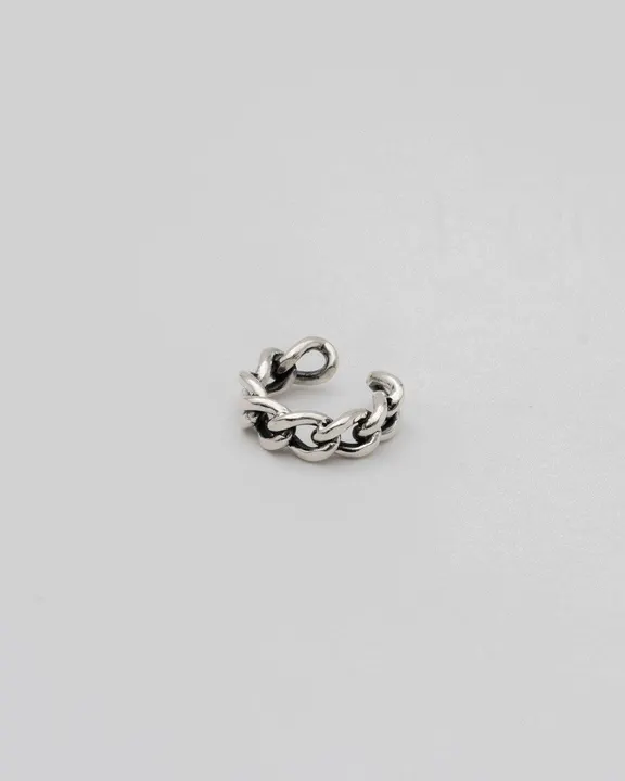 "Chain" series チェーンの隙間に燻し加工を施した、奥行きあるデザインが特徴のモード感溢れるイヤーカフ。 シンプルながらもディテールにこだわり、デイリーアクセとして活躍してくれること間違いなしの一品です。 ジェンダーを問わずお使いいただるアイテムとなっております。 同シリーズの"Chain" hoop pierceとのセット使いもおすすめです。