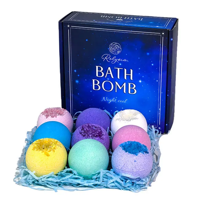 【暑い日のバスタイムを涼やかに】 Relysia Night Cool 9個入り ひんやりクール成分&うるおい美容成分配合 夏の星空にとける、涼やかなひとときをあなたに。 ふわっととける、きらめく癒し。 9つの色と香りが、そっと日常を彩ります。 今日もがんばったあなたへ、癒しの時間を。 Relysia(レリシア)から、暑い季節にぴったりのバスボム「Relysia Night Cool」が登場しました。 「小さな幸せをあなたに」をコンセプトに、見た目も香りも楽しめるギフトに選ばれるアイテムを展開中。 今回登場した「Relysia Night Cool」は、暑い季節のバスタイムを特別な時間に変える、ひんやりと心地よい癒やし体験をお届けします。 【夏の疲れをクールダウン。お風呂でうるおいケアも叶う、9つの魔法。】 Relysia Night Coolは、夏の暑さで疲れた心と体を優しく癒す、9個入りのバスボムセットです。 メントールのクール成分が、暑い日のほてったお肌を心地よくクールダウン。湯上がり後も爽快感が持続します。 さらに、ヒアルロン酸やアロエエキスなどの保湿成分を配合。 強い日差しやエアコンによる乾燥でダメージを受けたお肌を、入浴中から湯上がりまでしっとりと潤いで満たし、なめらかで心地よい肌触りをサポートします。 【9つの色と香りで、毎日のバスタイムに彩りを。】 その日の気分やシーンに合わせて選べる、9種類の豊かな色と香りをご用意しました。 まるで夜空にきらめく宝石のように彩り豊かで、バスタイムがもっと楽しみに。 今日はどの香りにしよう?そんな小さなわくわくが、日常にときめきをプラスしてくれます。 ピンクサファイヤ:優雅なフローラルブーケの香り(ヒアルロン酸配合) スノーバニラ:甘く心地よいバニラの香り(クール成分配合) クリスタル:透明感あふれる石鹸の香り(ヒアルロン酸配合) アイスワイン:爽やかでフルーティーなワインの香り(クール成分配合) アメジスト:深く穏やかなラベンダーの香り(ヒアルロン酸配合) ピンクソルベ:甘酸っぱいベリーソルベの香り(クール成分配合) シトリン:弾けるようなシトラスの香り(アロエエキス配合) フレッシュミント:爽快感あふれるミントの香り(クール成分配合) アクアマリン:清潔感のあるマリンノートの香り(アロエエキス配合) 【こだわりのパッケージで、ギフトにも最適。】 50パターン以上の中から選び抜いた、夏の夜空をイメージしたとっておきのデザインでバスボムを包みました。 ・頑張った自分へのねぎらいに。 ・お誕生日のお祝いに。 ・女子会やイベントのプレゼントに。 ・ちょっとしたお礼に。季節の挨拶に(夏ギフトとして)。 様々なシーンで「贈って喜ばれるギフト」として、あなたの気持ちを伝えます。 【夏の入浴を快適に 暑い日こそ、お風呂で心と体を整える。】 暑さでぐったり、冷房で冷えすぎ…そんな夏の疲れが溜まった身体に、やさしいぬくもりを。 湯船に浸かって一度体温を上げることで、その後の自然な放熱が促され、心地よい眠りにつながると言われています。 冷房で冷えた手足を優しくあたため、ほっとひと息つける癒しの時間を、 Relysia Night Coolがお届けします。 暑い日の夜の締めくくりに、心地よい眠りへと誘うバスタイムを体験してみませんか?